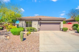 This popular Bonavista floor plan sits on a large lot featuring resort-style amenities, including a heated pool and spa with automated controls, a gas fireplace, and a BBQ island with built-in stainless-steel grill and refrigerator. The extended patio space is perfect for entertaining while enjoying views of Daisy Mountain and the Bradshaw Mountains, or relaxing under the spacious covered patio equipped with automated sunshade. The interior was updated with custom cabinetry in both the kitchen and baths, stainless steel kitchen appliances, and custom tile work in the baths. Additional features include plantation shutters and travertine flooring throughout. Located just steps from the Clubhouse, the property also includes a newer Trane HVAC system. Don't miss this exceptional home!